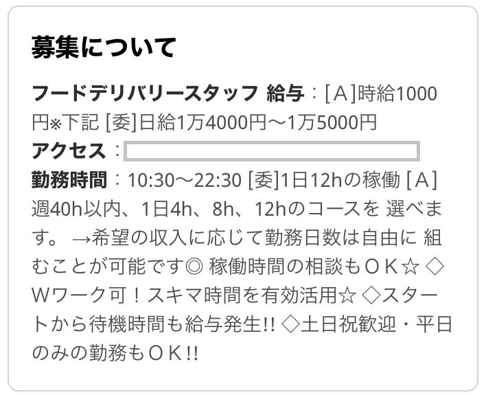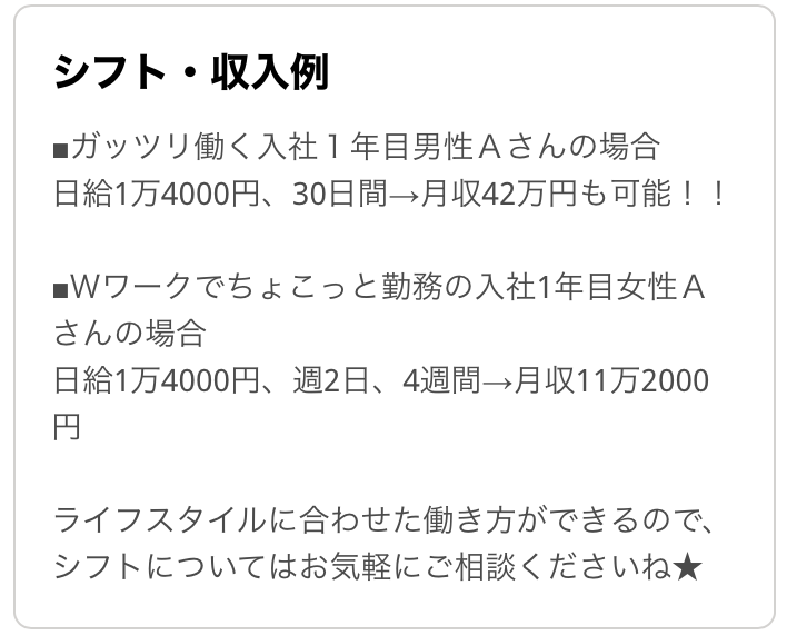 アルバイトの場合、週40時間以内の勤務で、4時間・8時間・12時間のコースを選べます。